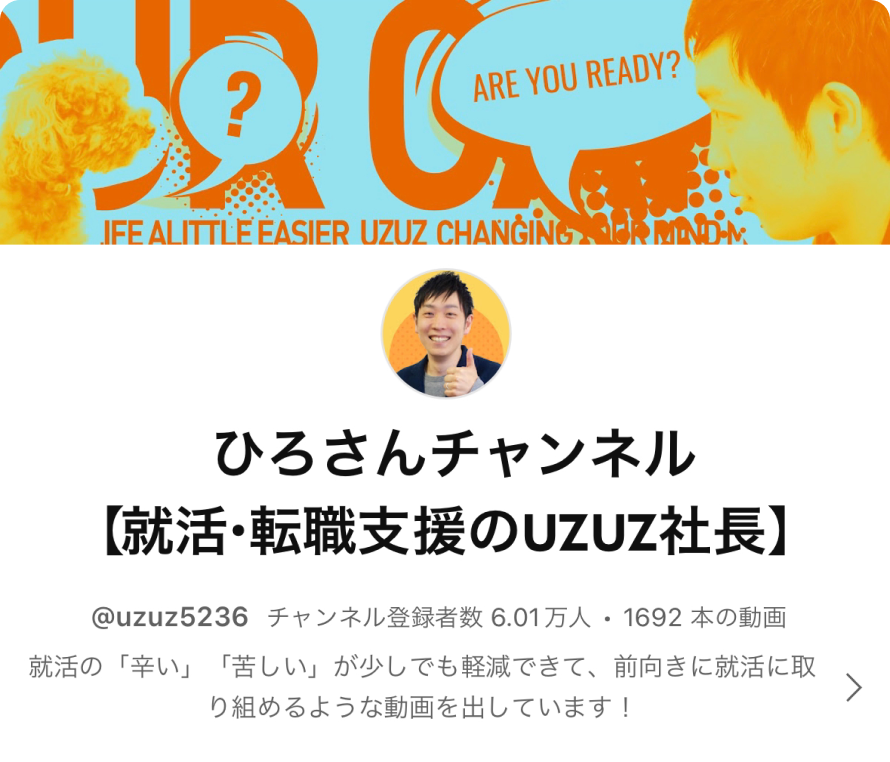 UZUZが運営するYouTubeチャンネル「ひろさんチャンネル」は、登録者数6.01万人、高評価97%、年間1200万回以上再生され、多くの方々に支持されています(2023年12月時点)。